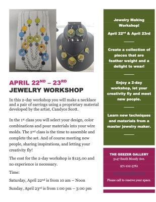 Next Class: Jewelry making workshop with Candyce Scott